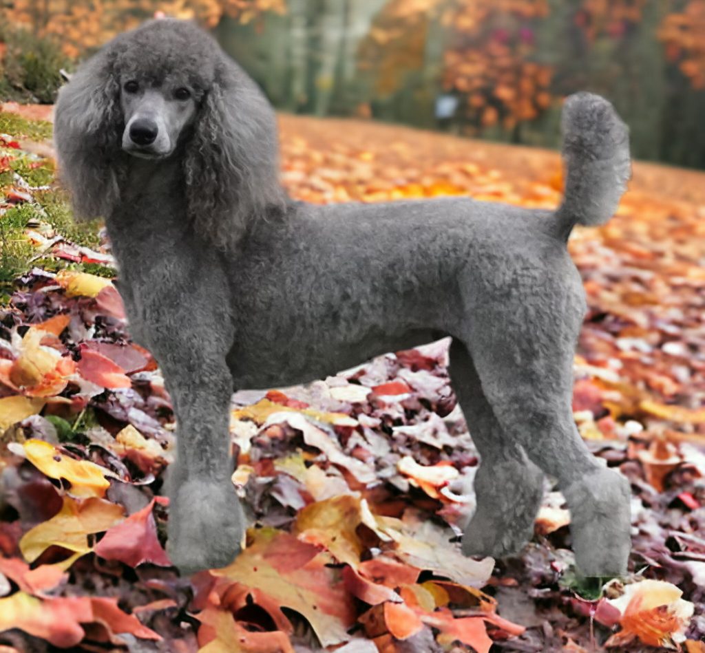 Dolly is an AKC Moyen size Poodle who stands 18″ and 24 lbs. She is a beautiful Silver girl with the most gorgeous eyes and a ultra sweet personality